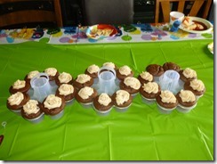 Parker turned 2 on April 11. We were so excited that both my mom and David’s mom were going to be in town at the same time around Parker’s birthday, so we just had to have it with them here. We had it on Saturday, April 6. Parker is really into Sesame Street, so that is what we did his party with. So Saturday between General Conference sessions we had a fun little party for our Parker Scott. It was mostly family and a few friends from church. We of course had to have some good food to go with it. We had some food, then opened presents and then did cupcakes. He wasn’t able to get a nap that day and was trying to go in his room to lay down and did not want to come out until we showed him a present that he could open. He came running out and started going crazy opening those presents. He got some great stuff from everyone. He got a water table for outside from Deedah, a basketball goal and huge dump truck from Meme, bubbles from great Grandma Turnbull, Elmo books from Aunt Trish, a lawn mower that makes bubbles from Maggie and David, and David and I got him a little 4 wheeler. The theme was outside toys…my kids have so many inside toys, but barely any outside toys. He was so cute with all of his new toys. Our favorite part was when he started running over his dad’s feet on purpose with the 4 wheeler. He kept backing up and doing it over and over again.