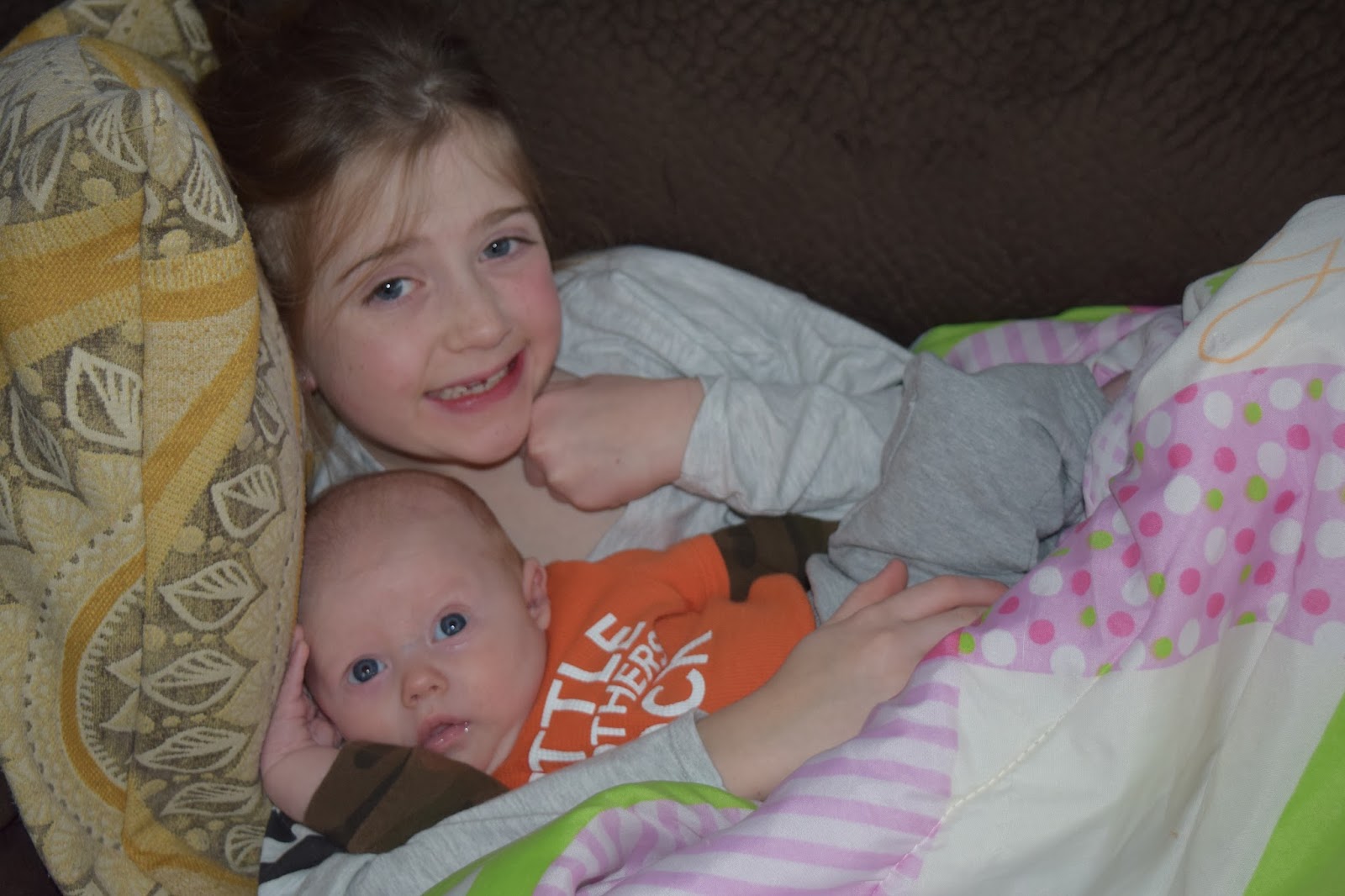 Pierce is 3 months old (January 11) He is such a sweet baby and smiles. No laughs yet, but he has the most content face and then the sweetest frown you have ever seen. He is sleeping a lot still and loves napping with Mommy. He still loves his brothers and sisters holding him. He is such a sweet baby . He has found his hands and loves looking at them and chewing on his fingers. He loves to talk and has the sweetest voice. He loves to snuggle. He loves the car now and his carrier. He loves to have a little tummy time and loves to look at himself in the mirror. He's so sweet and we love having him in our family.